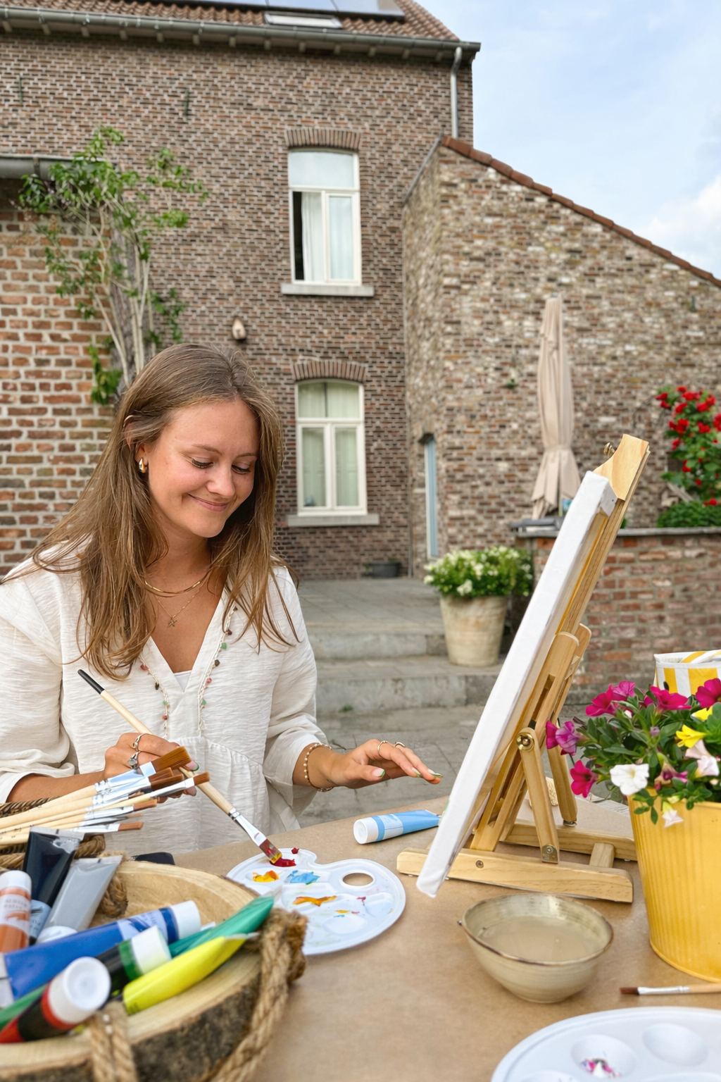 (schilderezeltje, verf, penselen, 1–2 canvassen om mee naar huis te nemen)